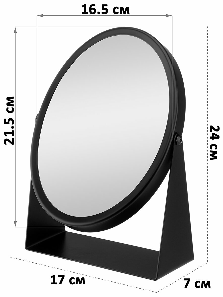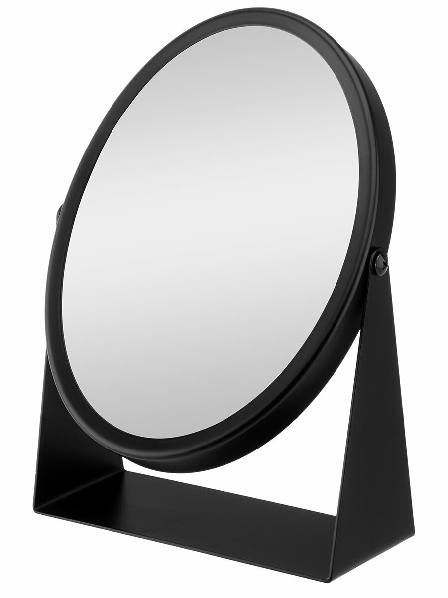 О товаре Двустороннее зеркало EL CASA чёрного цвета на подставке имеет сторону со стандартным отражением и сторону с пятикратным увеличением. Полный размер изделия – 17х7х24 см. размер зеркала – 21.5х16.5 см. размер подставки – 16.5х7х14.5 см. Угол наклона регулируется. Декоративное овальное зеркало вращается на 360 градусов. Органайзер выполнен из металла. Настольное зеркало станет функциональным аксессуаром и стильным дополнением интерьера вашего дома. Компактное зеркальце можно разместить на туалетном столике. полке. тумбочке как в спальне. так и ванной комнате. Поставьте его рядом со всеми косметическими принадлежностями. чтобы все было под рукой. Для женщин косметическое зеркало станет удобным помощником при ежедневном туалете. нанесении макияжа или маски для лица. Мужчинам зеркало подойдет для бритья. Металлическое зеркало удобно использовать визажистам или гримёрам. Поставляется в стильной картонной упаковке. Крутящееся зеркало на ножке станет отличным подарком любой женщине или девочке: маме. сестре. лучшей подруге. Двустороннее зеркальце с увеличительной стороной сможет стать стильным декором интерьера вашего дома и поможет поддерживать красоту в течение дня!