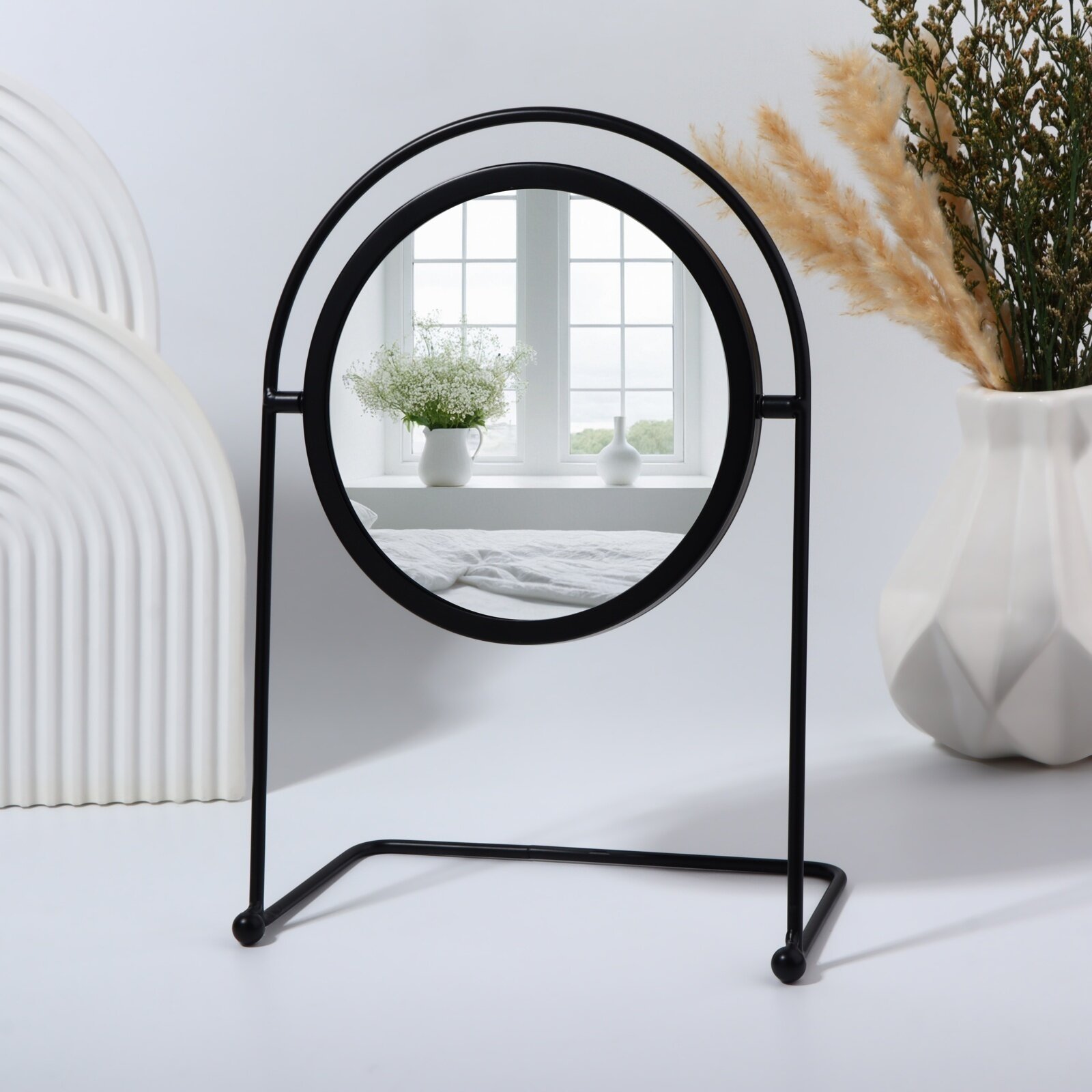 Зеркало настольное PREMIUM, круглое, металлическое, 29×20.5×11 см, (d=14.5 см), чёрное