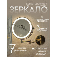 Зеркало вращается на 360 градусов, что позволяет использовать его с максимальным комфортом. Зеркало оснащено разъемом питания Type-c , кабель питания входит в комплект, что обеспечивает удобство и простоту подключения зеркала в любом месте.