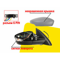 Купить Зеркало правое для Skoda Rapid с 2017 по 2020 гг и Volkswagen Polo с 2020 по 2022 гг разъем 6 PIN с доставкой по всей России.