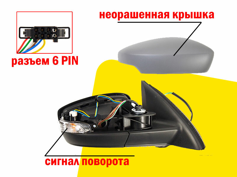 Зеркало правое для Skoda Rapid с 2017 по 2020 гг и Volkswagen Polo с 2020 по 2022 гг разъем 6 PIN: сравнение цен, характеристики, фото, актуальное наличие и цены.