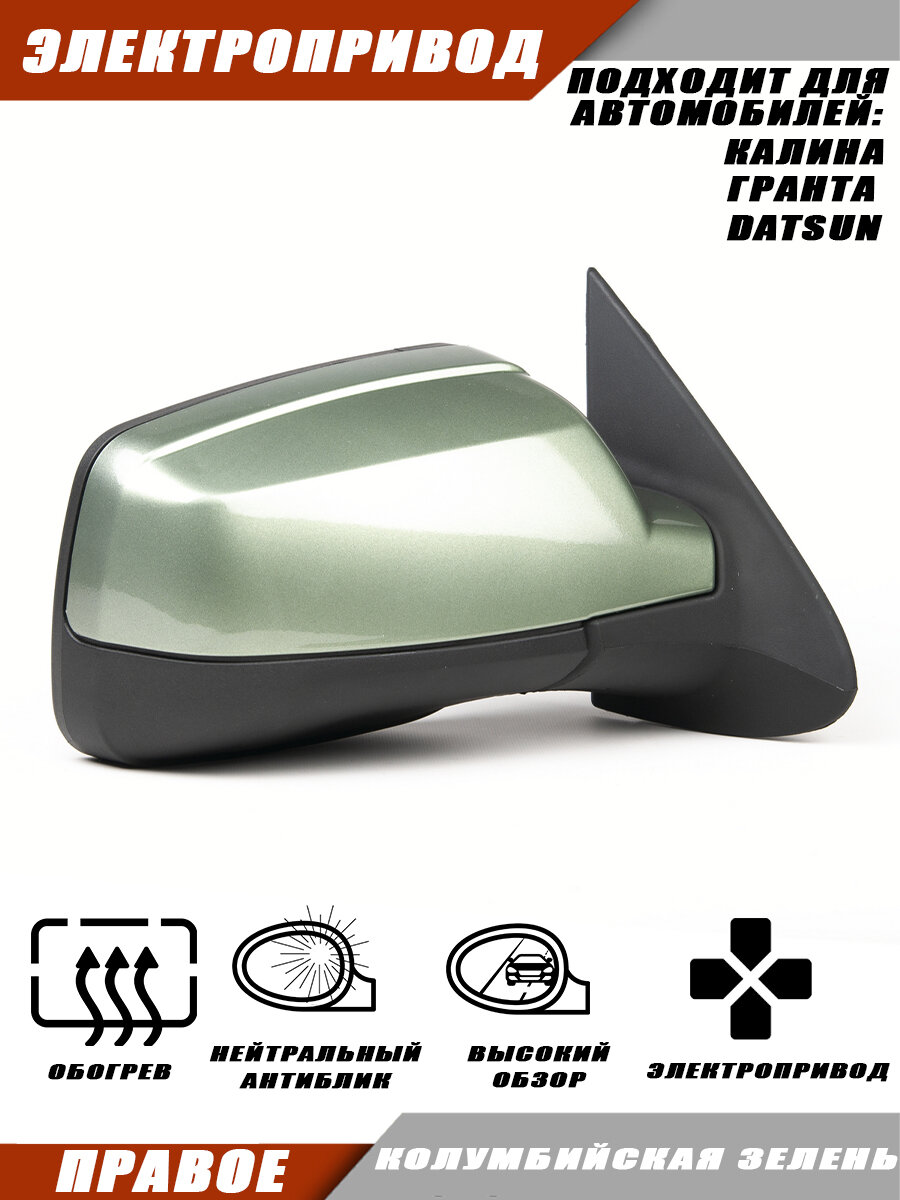 Зеркало правое на Калину с электроприводом и обогревом. Цвет Колумбийская зелень.: сравнение цен, характеристики, фото, актуальное наличие и цены.