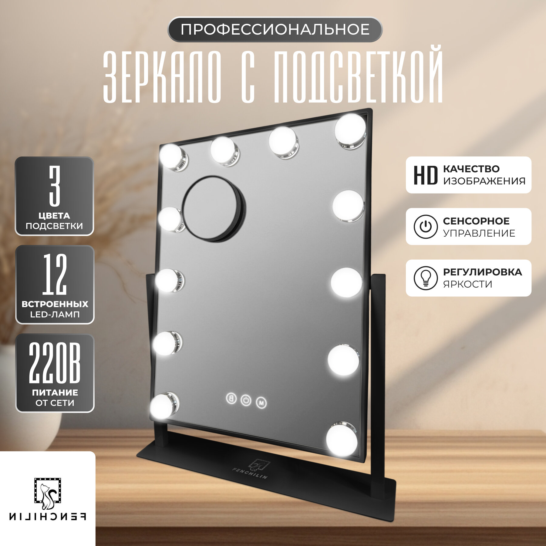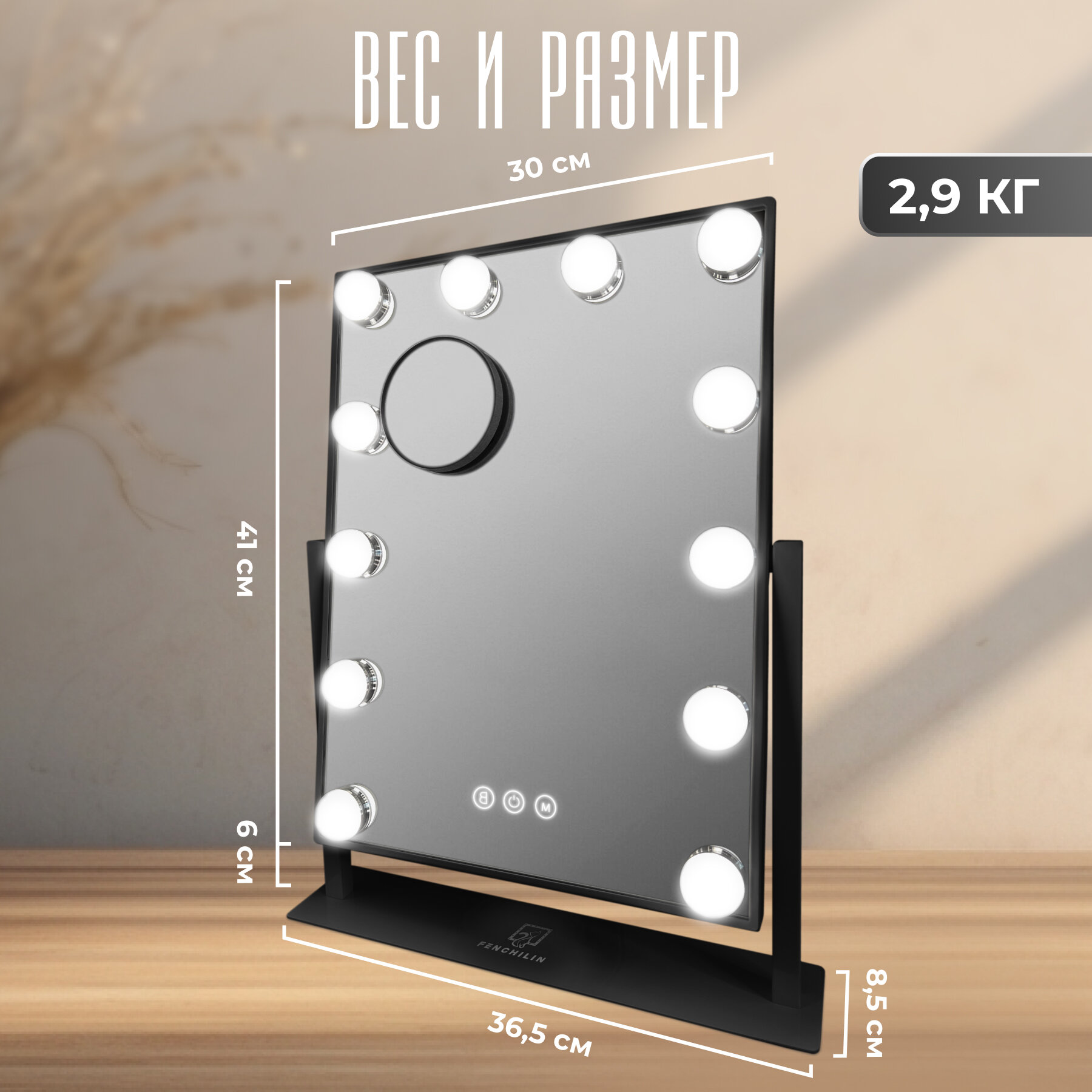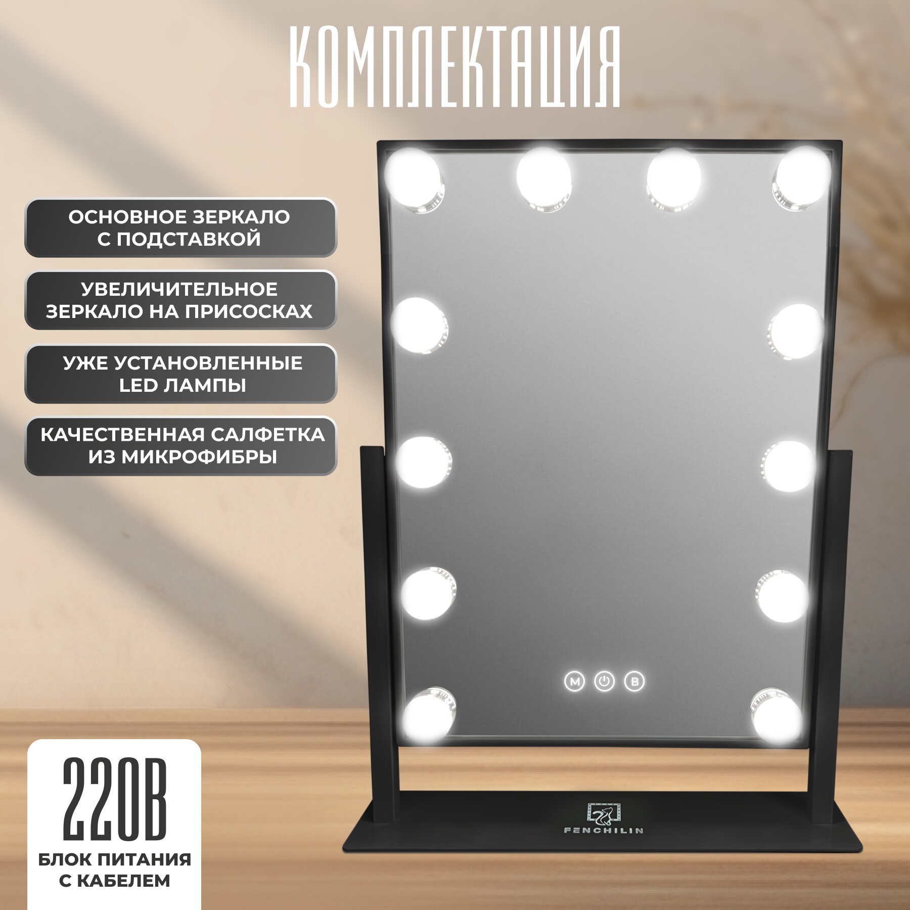 Зеркало с подсветкой для макияжа настольное 41х30 см FENCHILIN модель DC-117 серия Hollywood, черное: сравнение цен, характеристики, фото, актуальное наличие и цены.