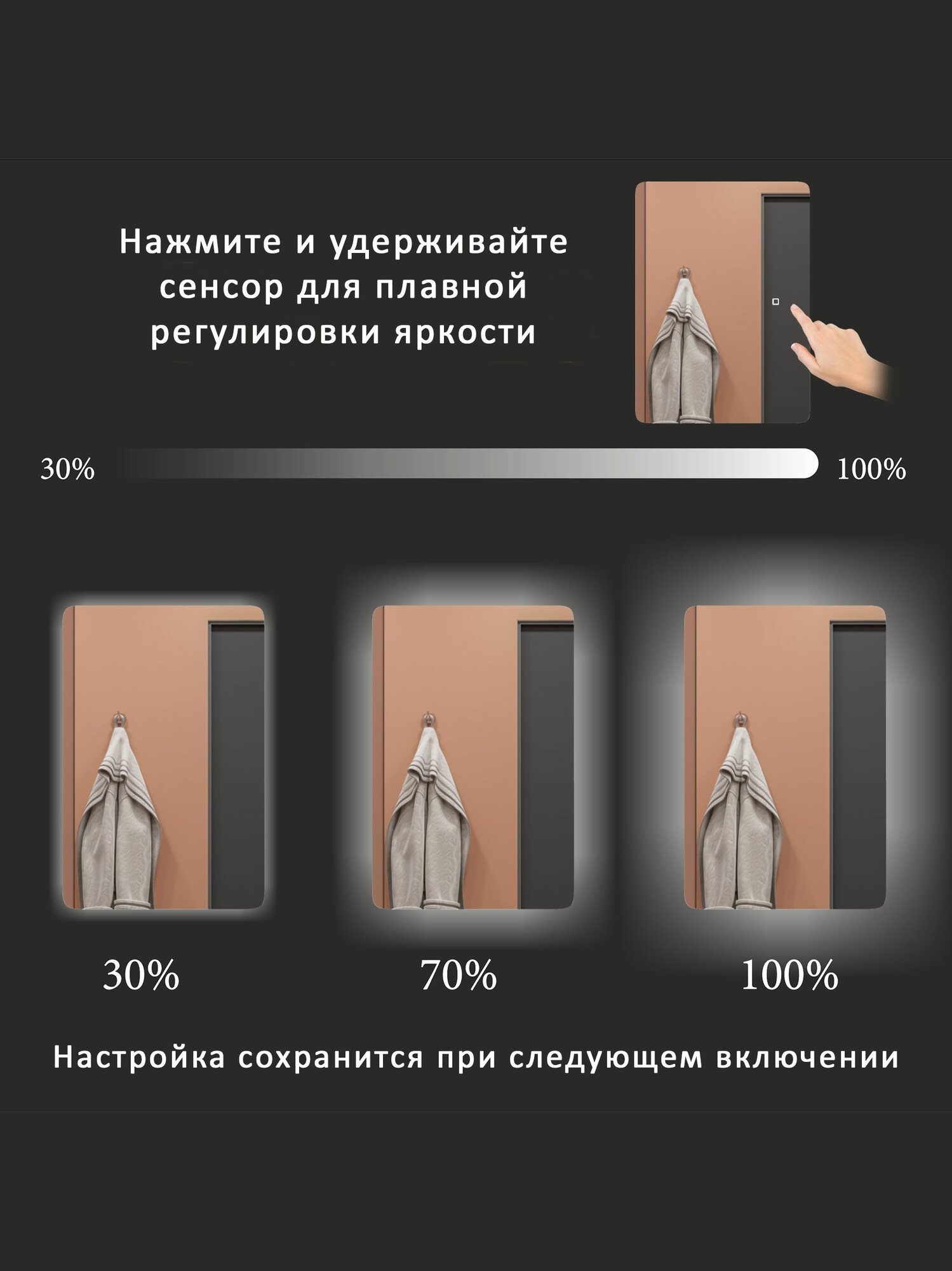 Зеркало-шкаф Эос 70*50 c тройной LED-подсветкой, универсальный