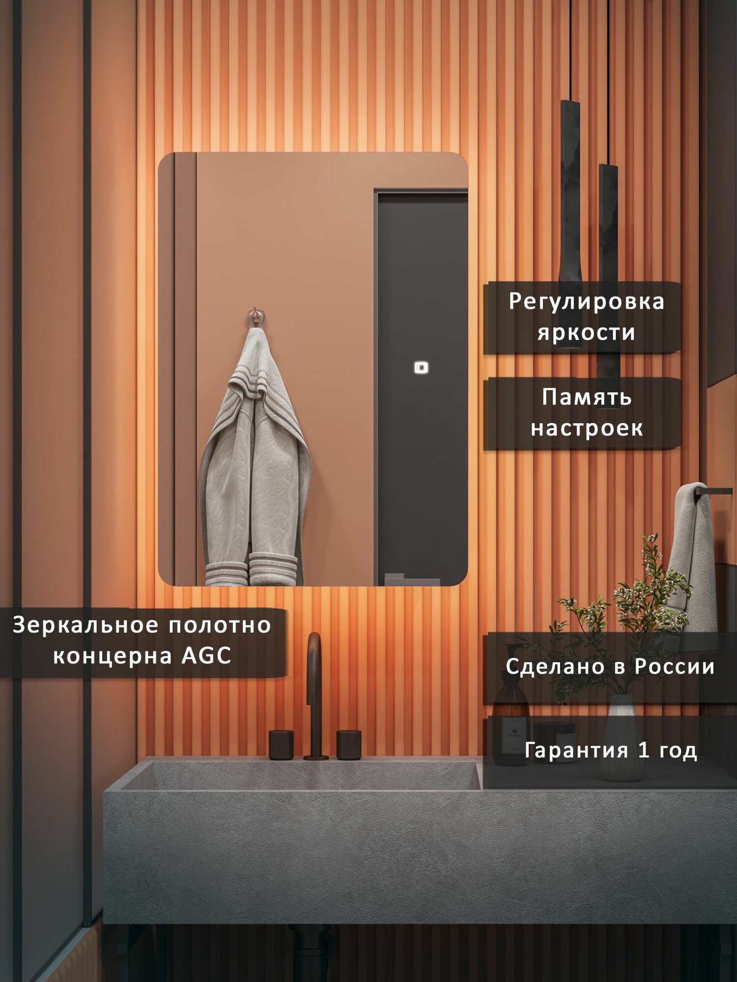 Купить Зеркало-шкаф Эос 80*60 c теплой LED-подсветкой, универсальный, подогрев с доставкой по всей России.