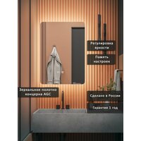 Зеркало-шкаф Эос 60*40 c теплой LED-подсветкой, универсальный, подогрев
