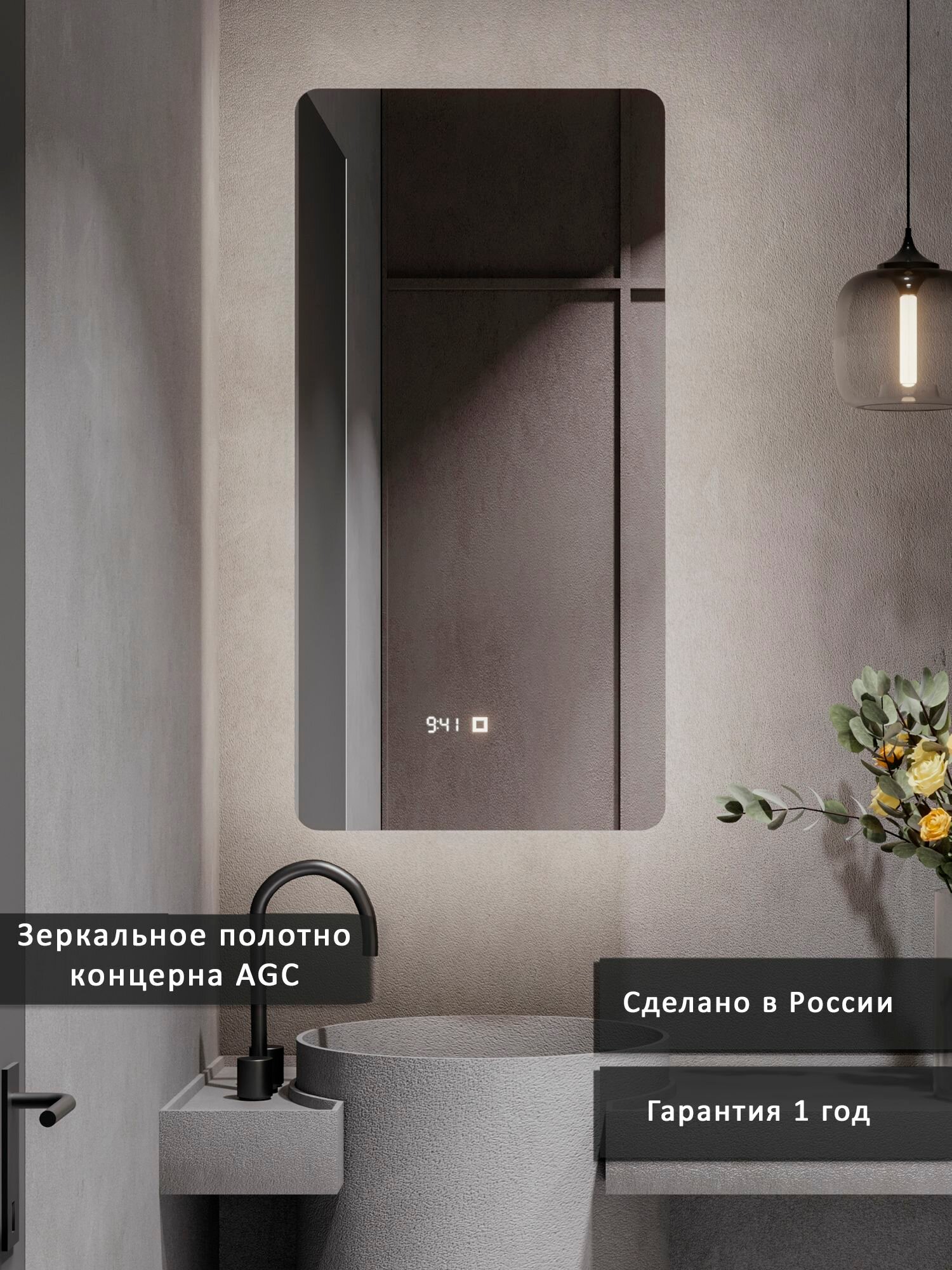 Купить Зеркало-шкаф PRD 100*55 с тройной LED-подсветкой, петли слева, с часами с доставкой по всей России.