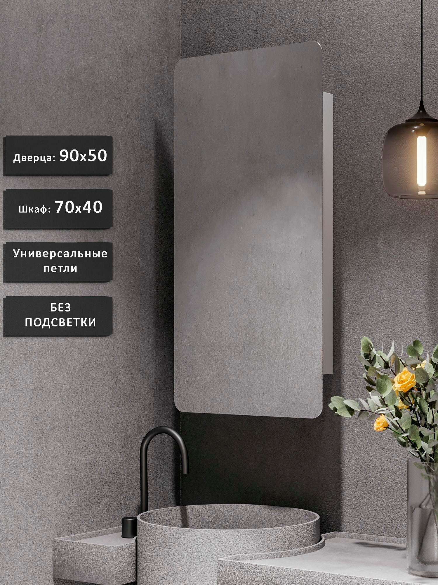 Зеркало-шкаф PRD 90*50 без подсветки, универсальный