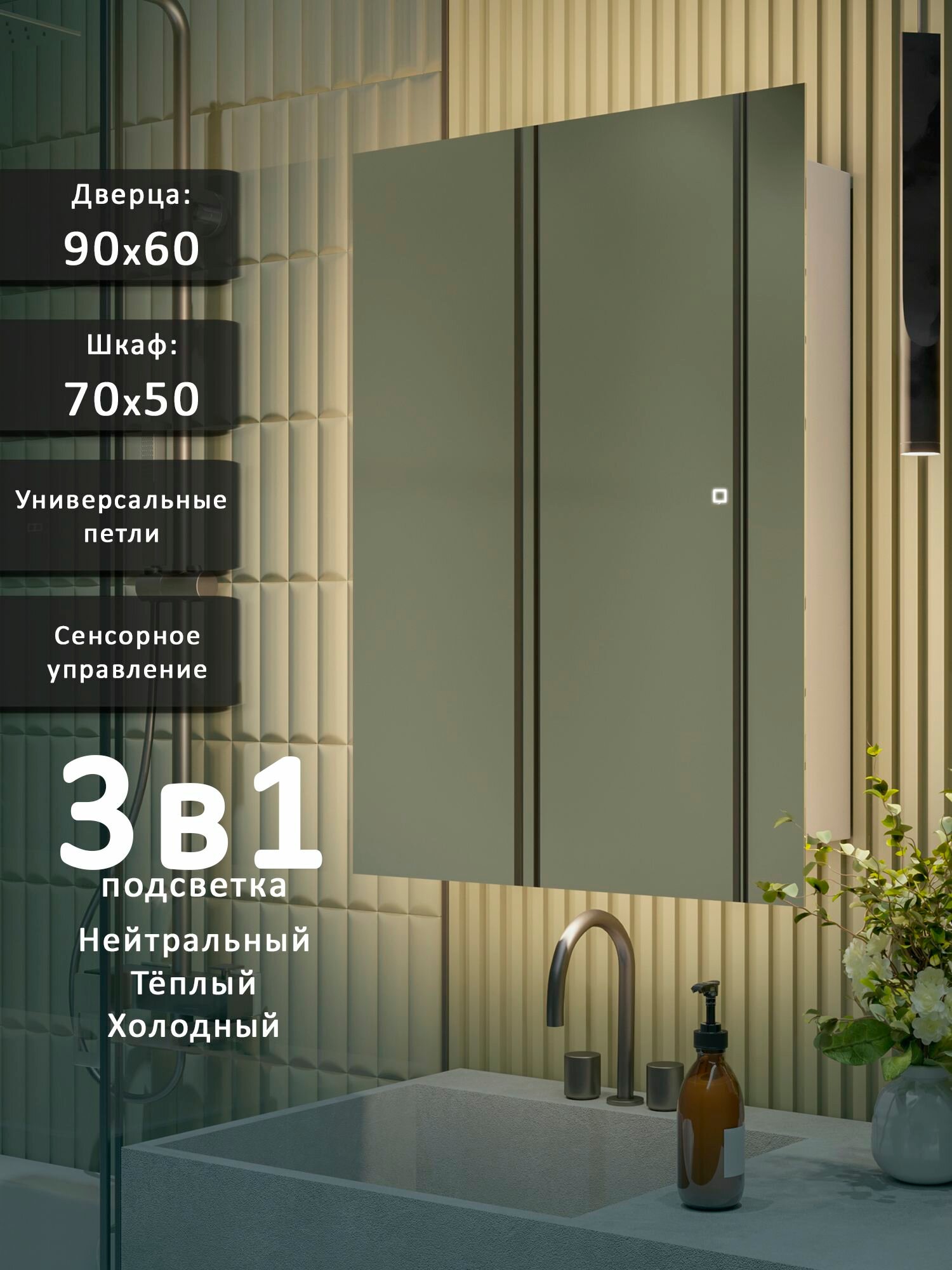Зеркало-шкаф QTR 90*60 c тройной LED-подсветкой, универсальный: сравнение цен, характеристики, фото, актуальное наличие и цены.