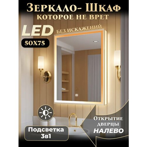 Купить Зеркало шкаф с подсветкой в ванную Мира 50х75 левое, Подсветка 3в1, Цвет корпуса: белый с доставкой по всей России.