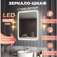Зеркало шкаф с подсветкой в ванную Мира лайт 50х75 правое, Подсветка нейтральная, Цвет корпуса: белый