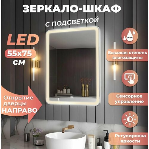 - включение подсветки осуществляется с помощью сенсорного выключателя с возможностью плавной регулировки света, расположенного за зеркалом внутри дверцы.