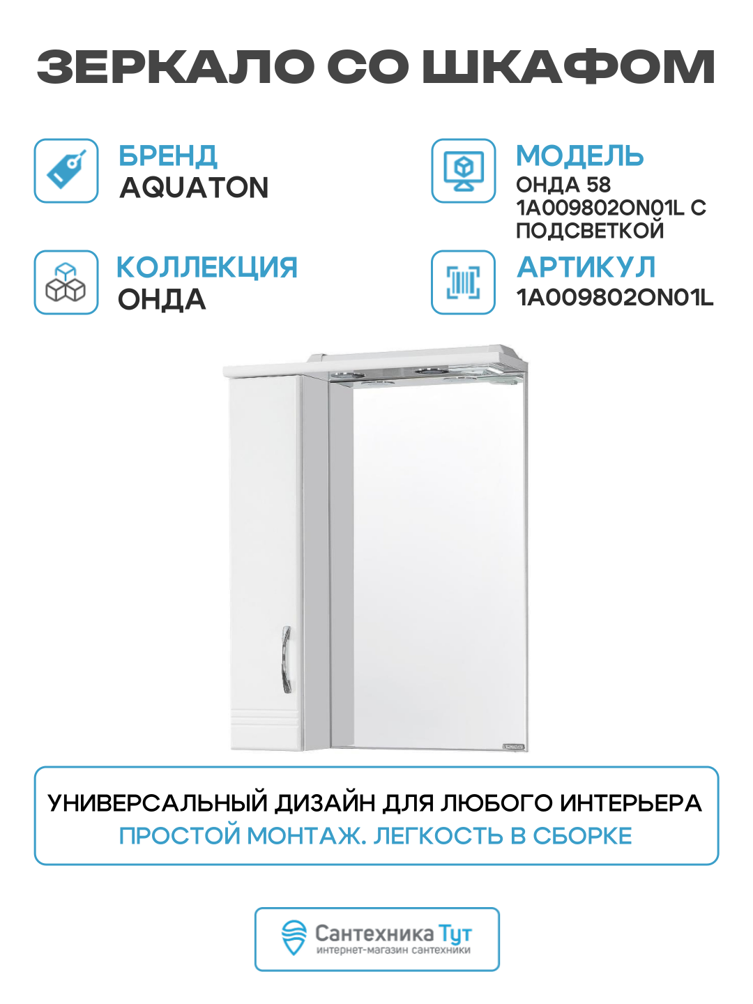 Купить Зеркало со шкафом Aquaton Онда 58 1A009802ON01L с подсветкой Белое МДФ / ЛДСП белый Россия с доставкой по всей России. Зеркало со шкафом Aquaton Онда 58 1A009802ON01L с подсветкой Белое МДФ / ЛДСП белый Россия: сравнение цен, характеристики, фото, актуальное наличие и цены.