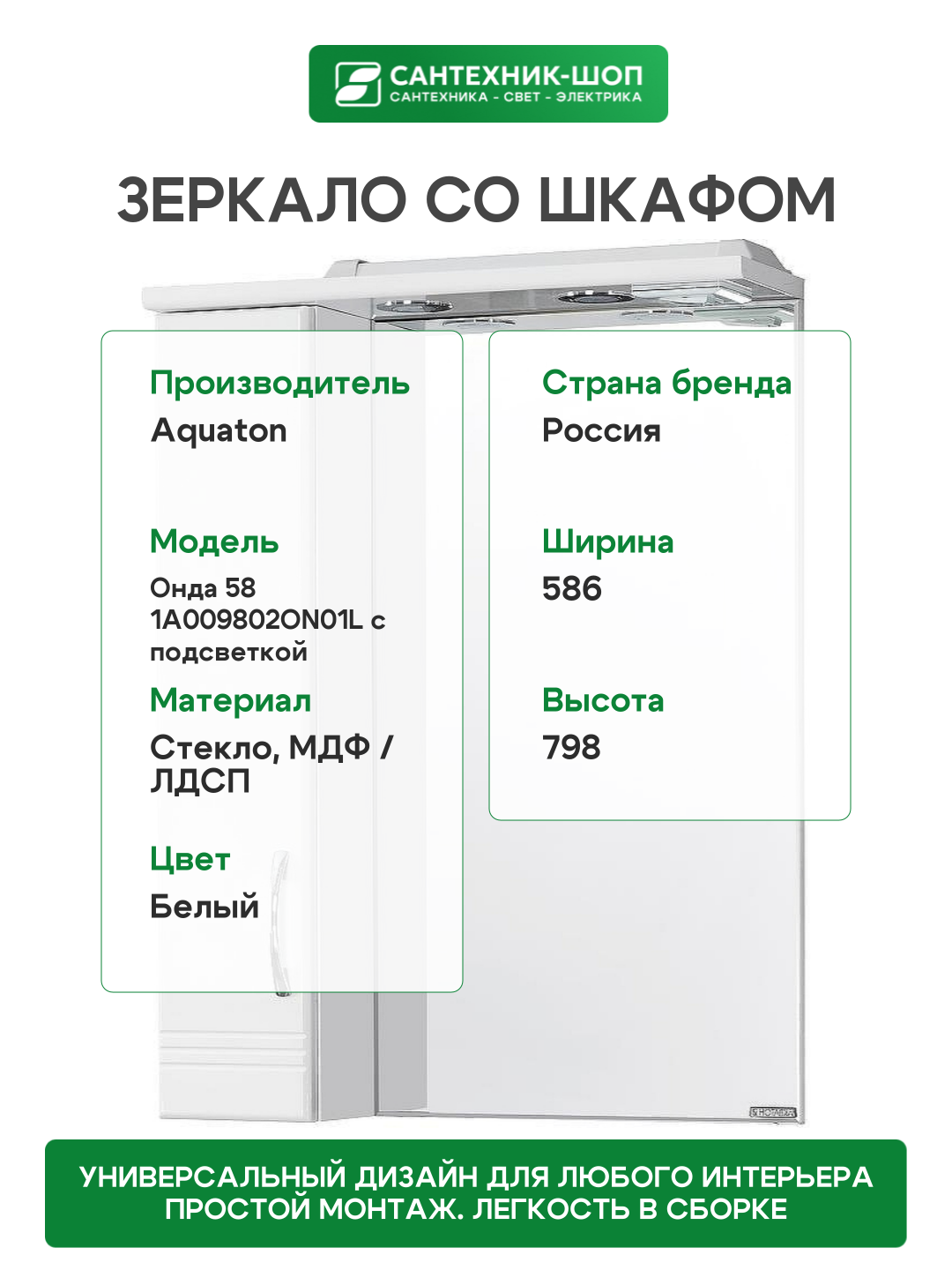 Купить Зеркало со шкафом Aquaton Онда 58 1A009802ON01L с подсветкой Белое МДФ / ЛДСП, стекло с доставкой по всей России. Зеркало со шкафом Aquaton Онда 58 1A009802ON01L с подсветкой Белое МДФ / ЛДСП, стекло: сравнение цен, характеристики, фото, актуальное наличие и цены.