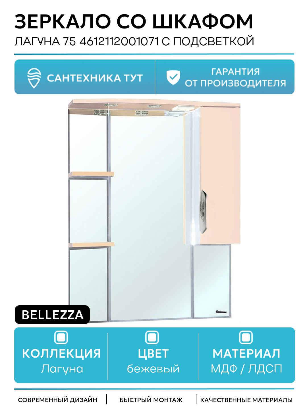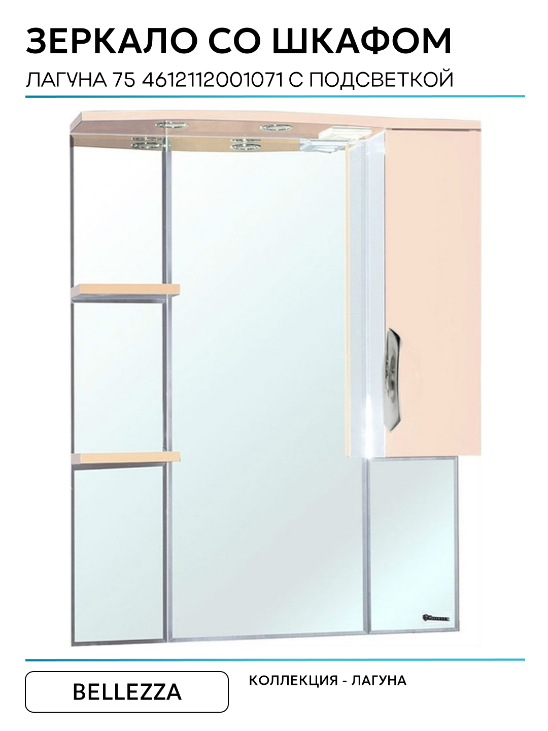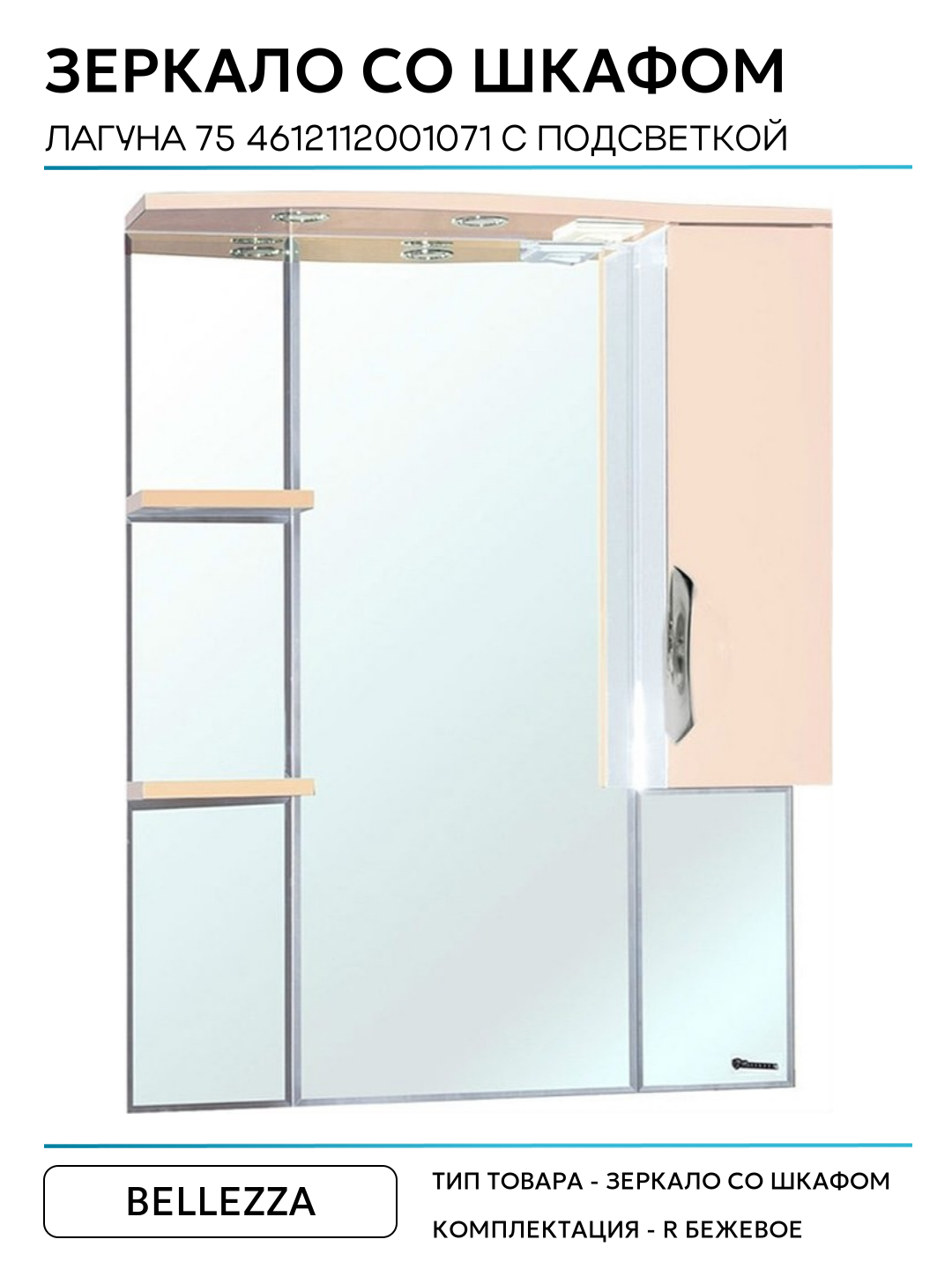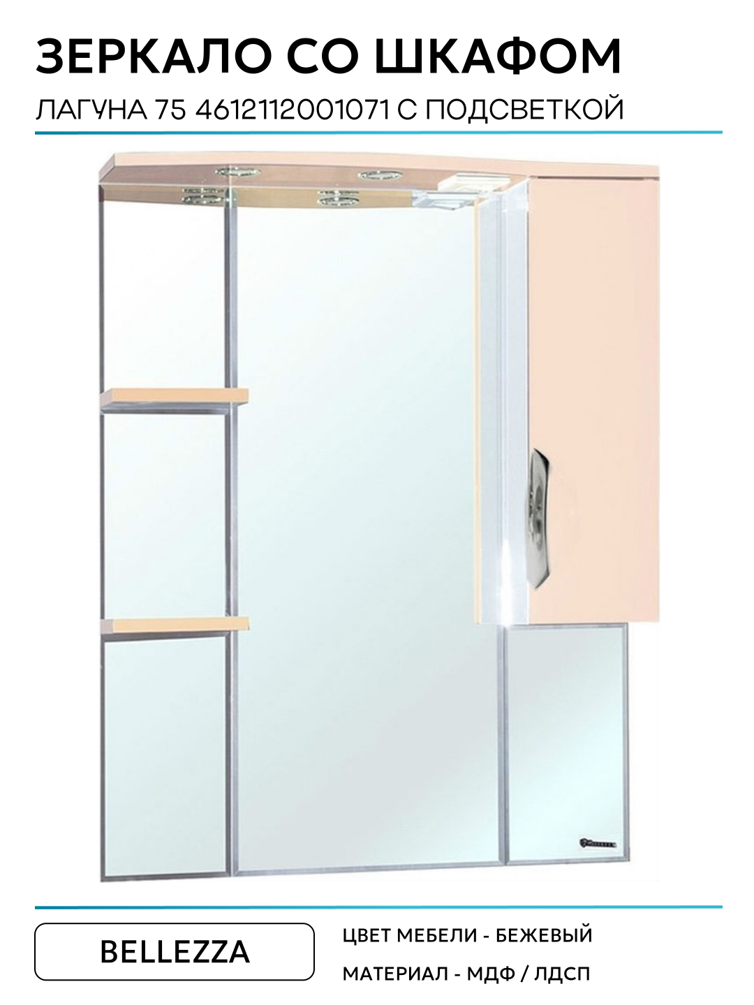 Зеркало со шкафом Bellezza Лагуна 75 4612112001071 с подсветкой R Бежевое МДФ / ЛДСП бежевый: сравнение цен, характеристики, фото, актуальное наличие и цены.