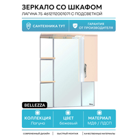 Купить Зеркало со шкафом Bellezza Лагуна 75 4612112001071 с подсветкой R Бежевое МДФ / ЛДСП бежевый с доставкой по всей России.