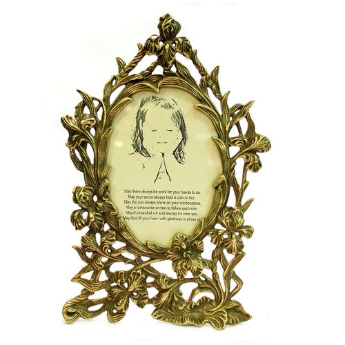 Под фотографию размером 19*14 см. Овальной формы, увитая цветами, роскошная, ажурная настольная рамка для фото выполнена из бронзы. В стиле Модерн. Может быть использована для зеркала, памятной фотографии или красивого пейзажа - это украшение любого интерьера. Также может стать замечательным подарком на бронзовую свадьбу.