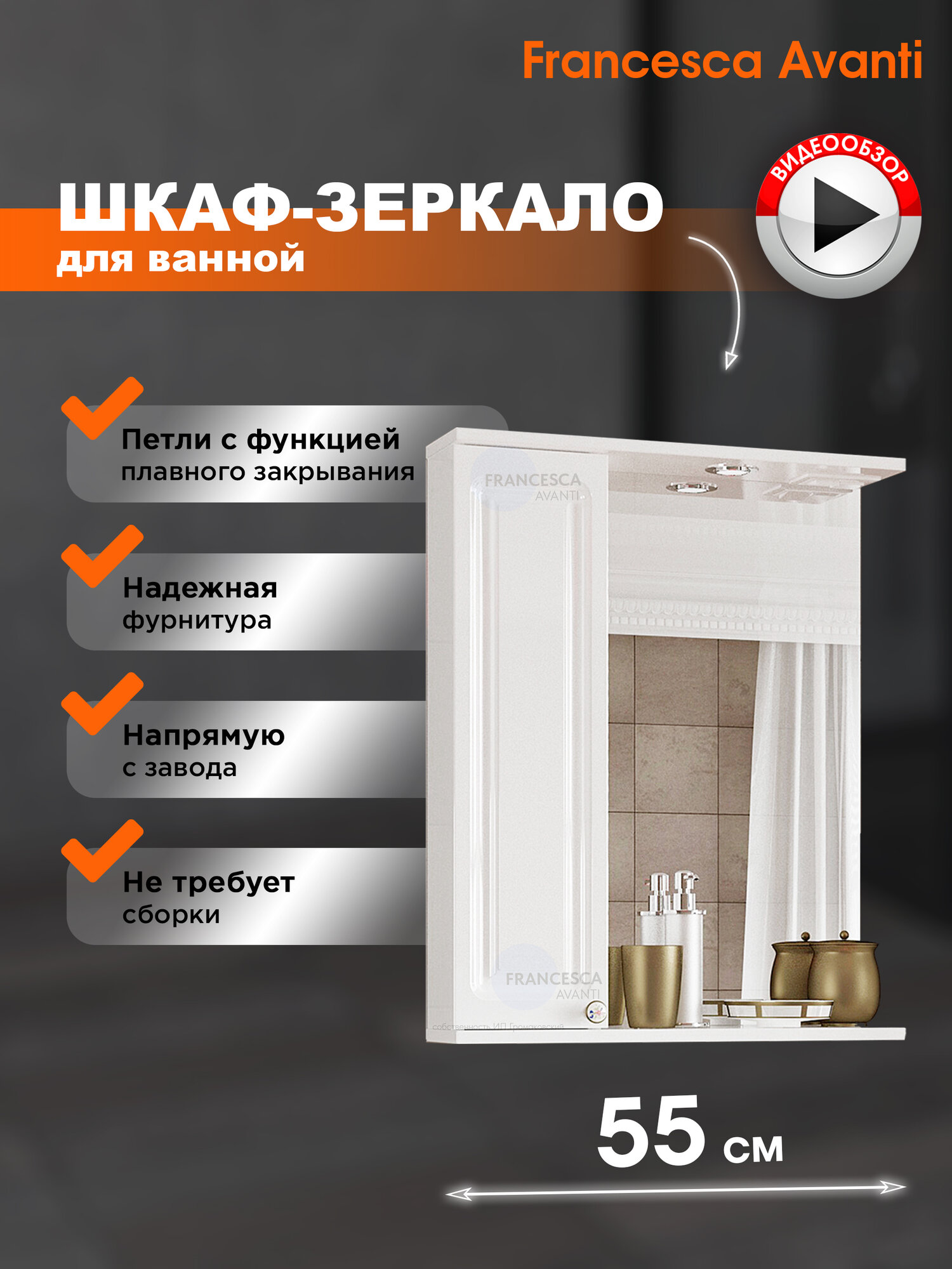 Зеркало-шкаф в ванную Francesca Avanti Империя 55 белый, левое - стильное и функциональное решение для вашей ванной комнаты.