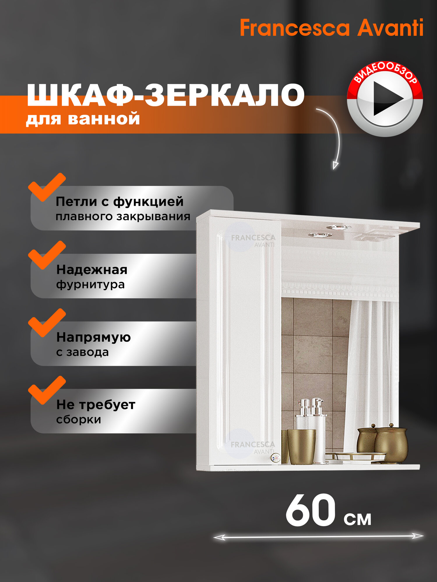 Зеркало-шкаф в ванную Francesca Avanti Империя 60 левое, белый - это стильное и функциональное решение для вашей ванной комнаты.