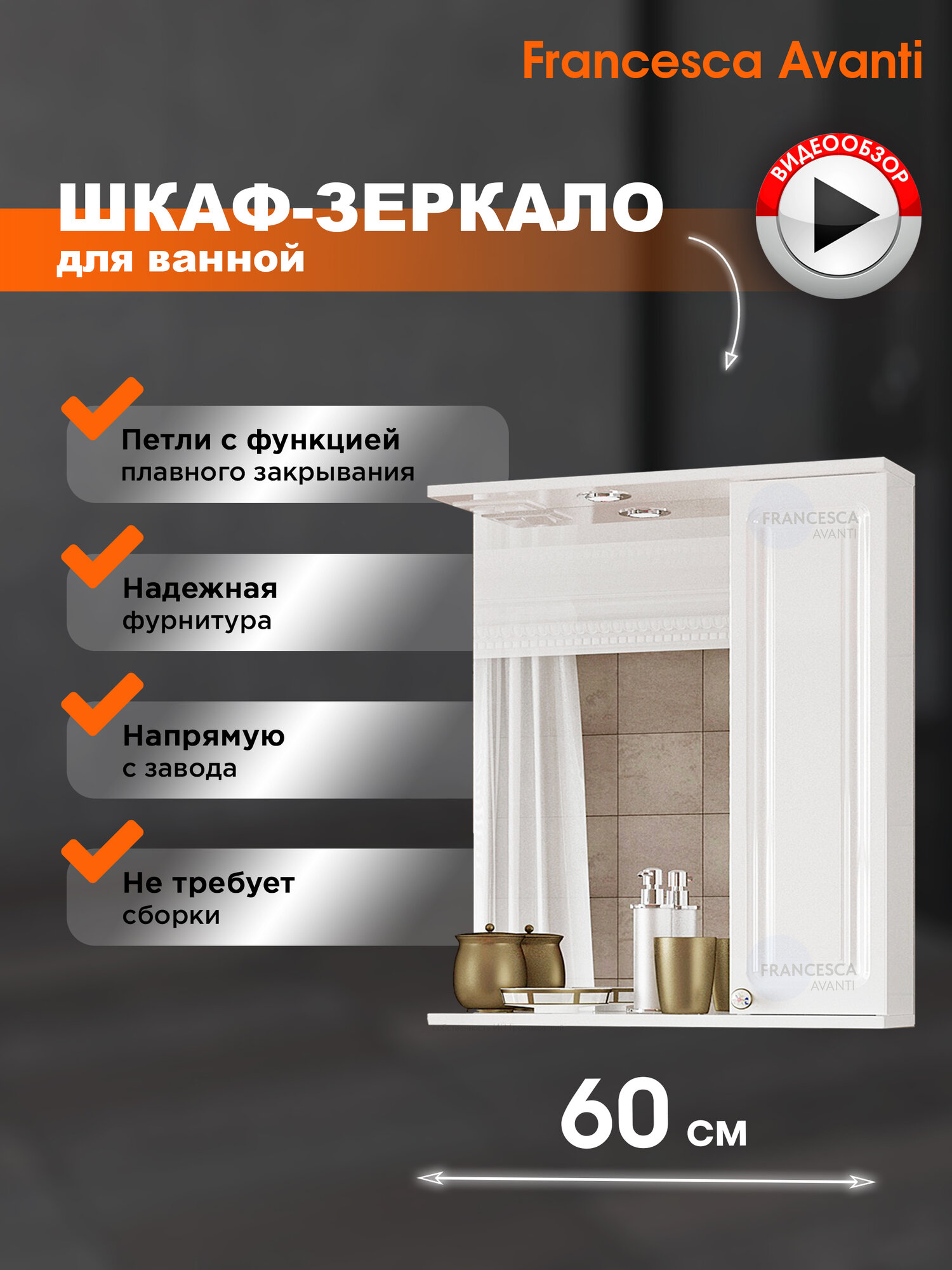 Зеркало в ванную Francesca Avanti Империя 60 со шкафчиком, белый, правый: сравнение цен, характеристики, фото, актуальное наличие и цены.