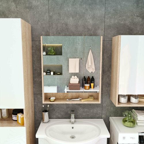 Зеркало в ванную с шкафом, FAURAplus Глория 60 дуб кантри, левый, влагостойкий, распашной, навесной: сравнение цен, характеристики, фото, актуальное наличие и цены.