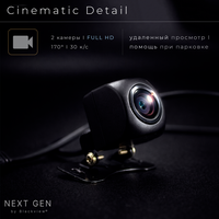Двухканальная запись с передней и тыловой камер. Задняя камера с разрешением Full HD 1080p. Поддержка циклической записи — новые файлы автоматически перезаписывают старые. Датчик удара (G-sensor) фиксирует и сохраняет видео при резком торможении или ДТП.