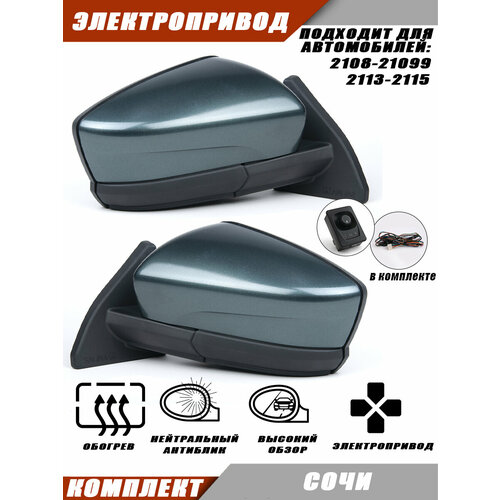 Комплект адаптированых зеркал на ВАЗ 2108 2109 2114 в корпусе Lada Granta 2190 электропривод, обогрев цвет Сочи 360Solina Установка зеркал не требует доработки места монтажа. Быстрая установка •производитель: SOLINA •ТИП регулировки зеркального элемента: электропривод •обогрев зеркального элемента: ДА •антибликовое покрытие: нейтральный антиблик •повторитель поворота: НЕТ •цвет корпуса: сочи 360 •электроскладывание: НЕТ •марка автомобиля: 2108; 2109; 21099; 2113; 2114; 2115 Мы надёжно упакуем ваш заказ, что бы он пришёл к вам в целости. Зеркала Solina – синоним качества. Каждое изделие проходит серьёзный контроль качества, который гарантирует автомобилисту многолетнююэксплуатацию зеркал. Зеркала Солина обладают хорошей обзорностью. Зеркальные элементы бренда надёжно крепятся к корпусу автомобильного зеркала, невыскакивают, не вибрируют, не дребезжат. Антибликовое покрытие нанесено качественно и не облезает даже при интенсивной эксплуатации авто.