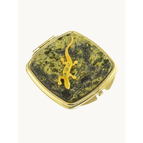 Зеркальце закругленное из змеевика с ящерицей цвет золото размером 7х6х1 см и весом 75 г.