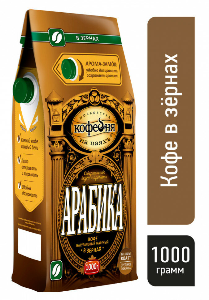 Зерна кофейные Московская Кофейня На ПаяхЪ «Арабика», 100%, 1кг: сравнение цен, характеристики, фото, актуальное наличие и цены.