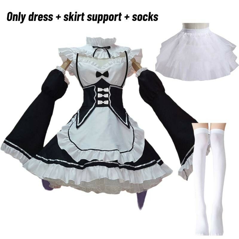 Купить Zero kara hajimeru isekai seikatsu twins ram rem классический костюм косплей горничной платье и головной убор набор голубой парик с доставкой по всей России.