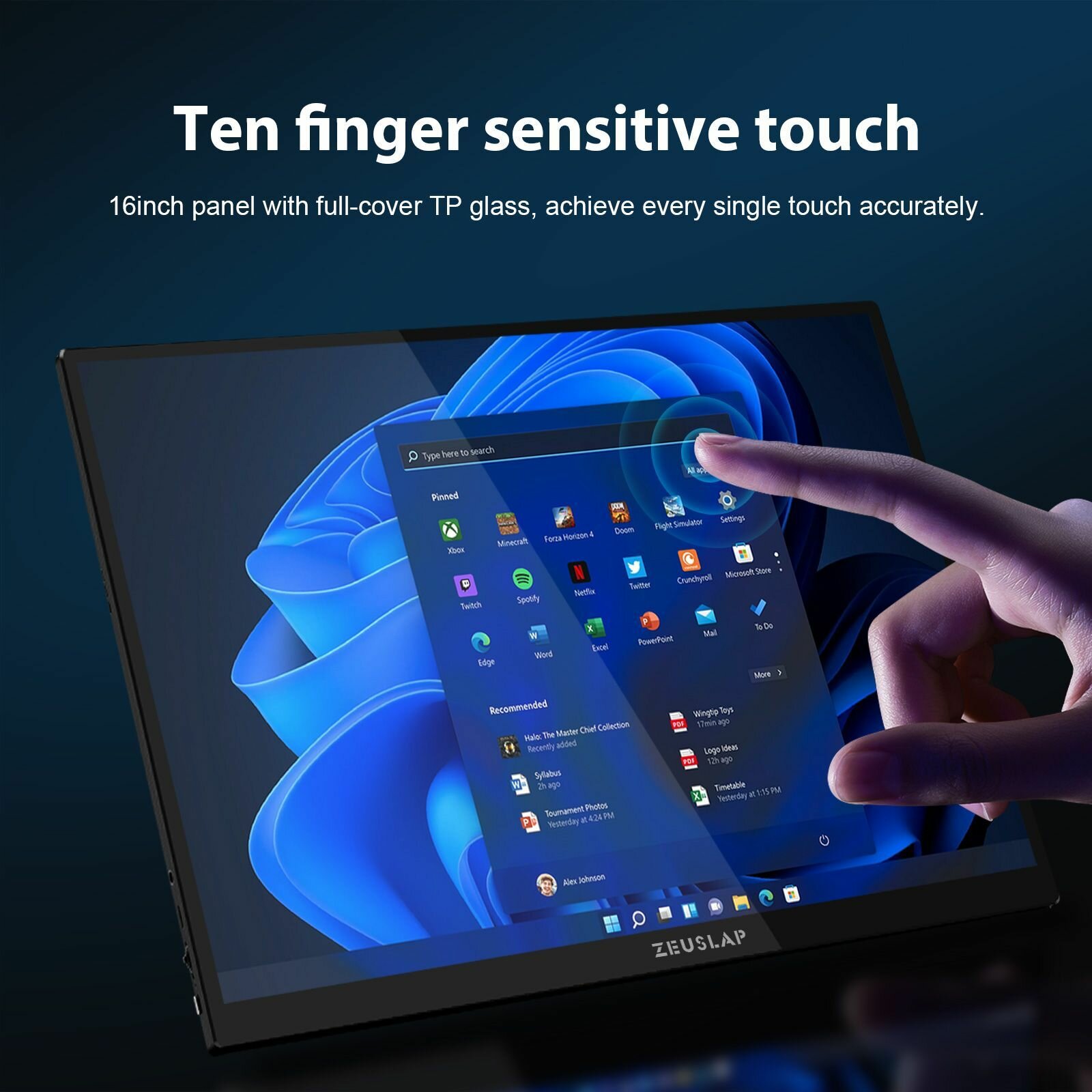 ZEUSLAP 16″ 2.5K 144hz сенсорный экран портативный монитор 2560*1600 100%sRGB 500Cd/m туристический дисплей для ноутбука компьютера Steam Deck PS5 Switch Xbox