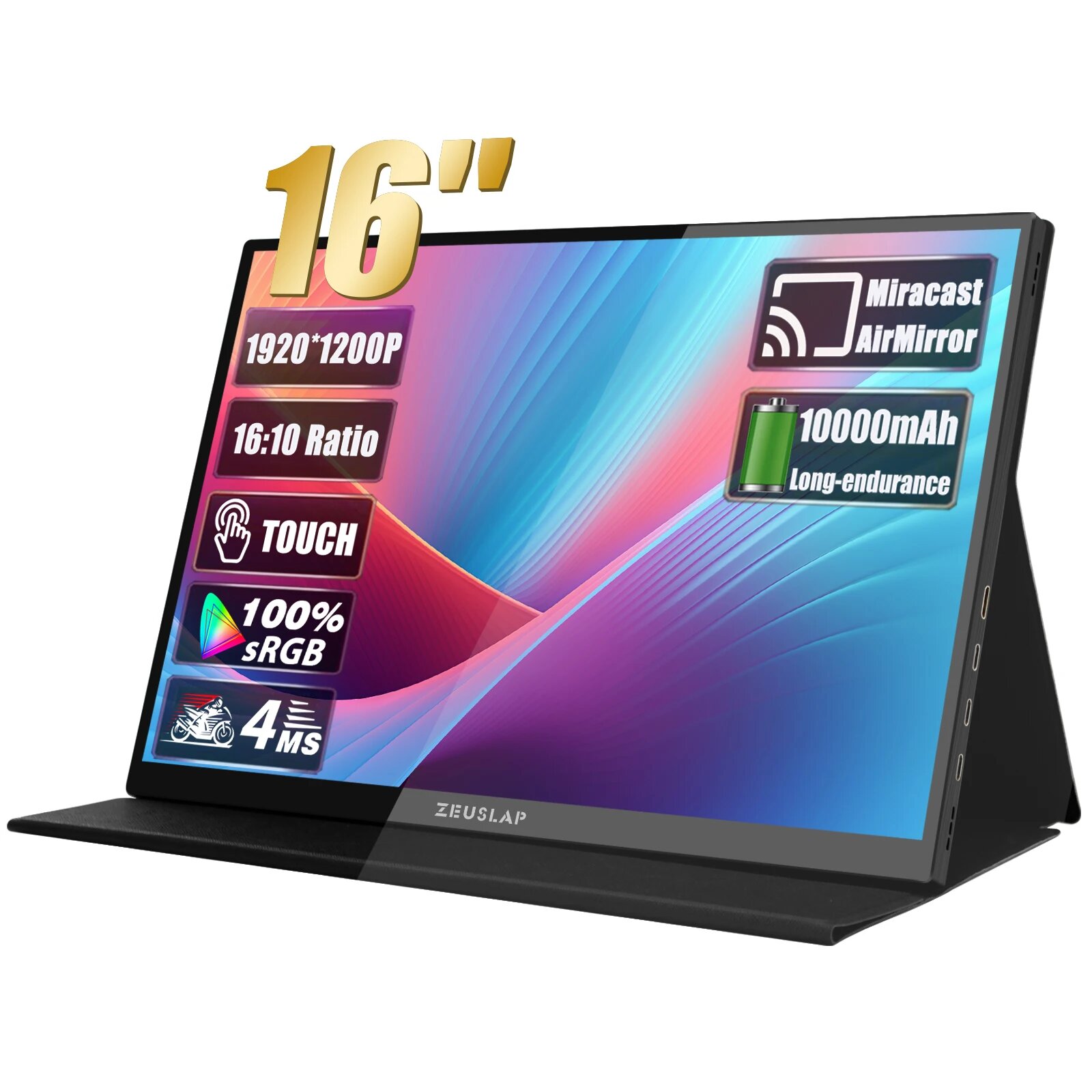 ZEUSLAP 16-дюймовый беспроводной портативный монитор Miracast с сенсорной функцией, удлинительный экран для ноутбука, телефона, PS5, Xbox с аккумулятором: сравнение цен, характеристики, фото, актуальное наличие и цены.
