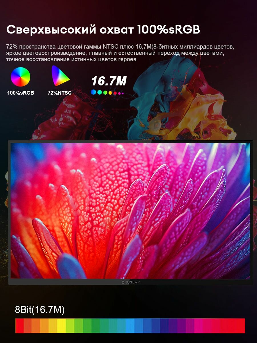 Купить ZEUSLAP 18.5″ 100гц сенсорный экран портативный монитор FHD 100%sRGB монитор для пк туристический дисплей для ноутбука компьютера для ноутбука Switch Steam Deck PS5 Xbox с доставкой по всей России.