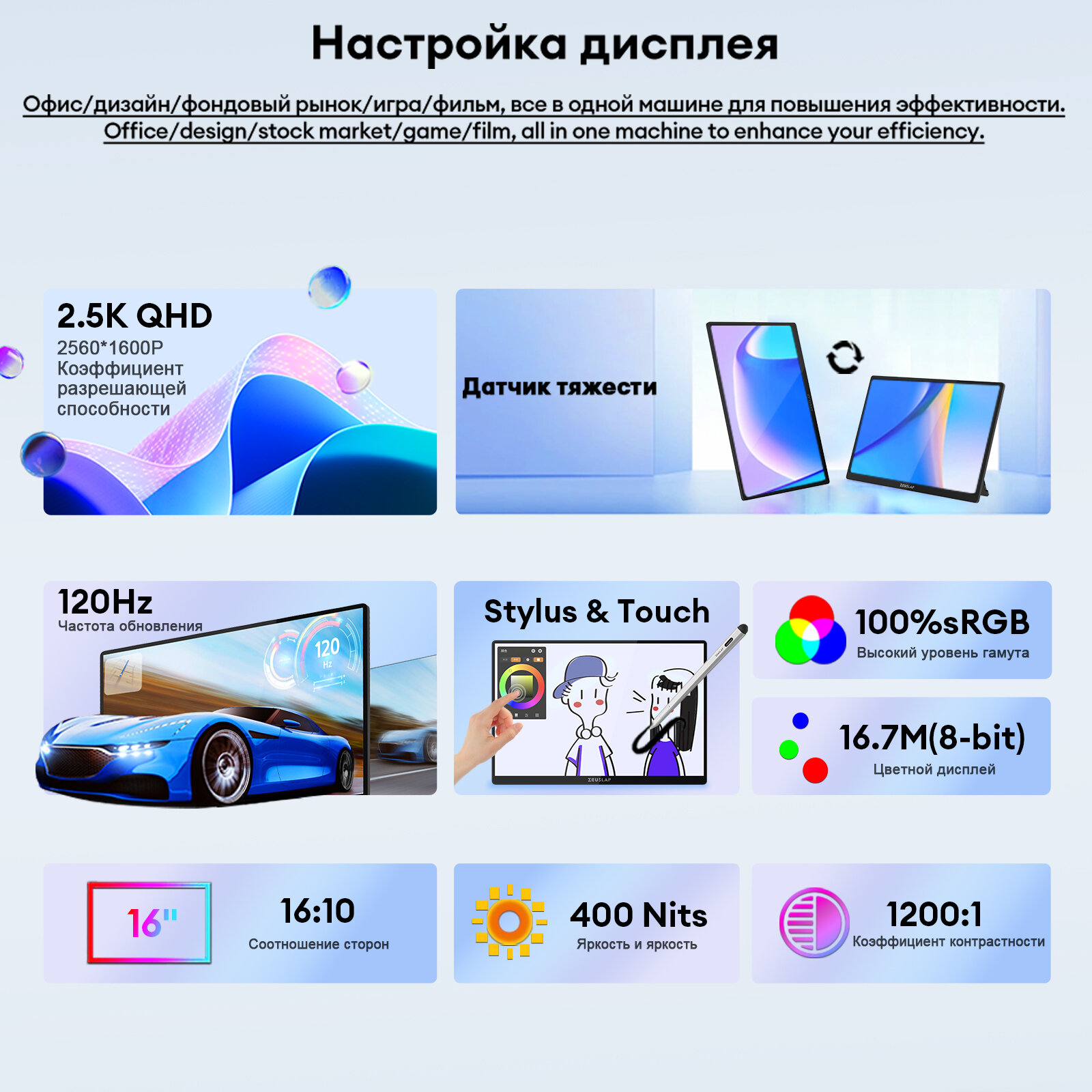 Купить ZEUSLAP P16 MAX PRO 16inch 2,5K портативный монитор сенсорный экран игровой монитор 120 Гц — MPP с поддержкой сенсорной ручки HDR 3MS 100%sRGB IPS VESA для ноутбуков мини ПК PS5 Switch Xbox с доставкой по всей России.