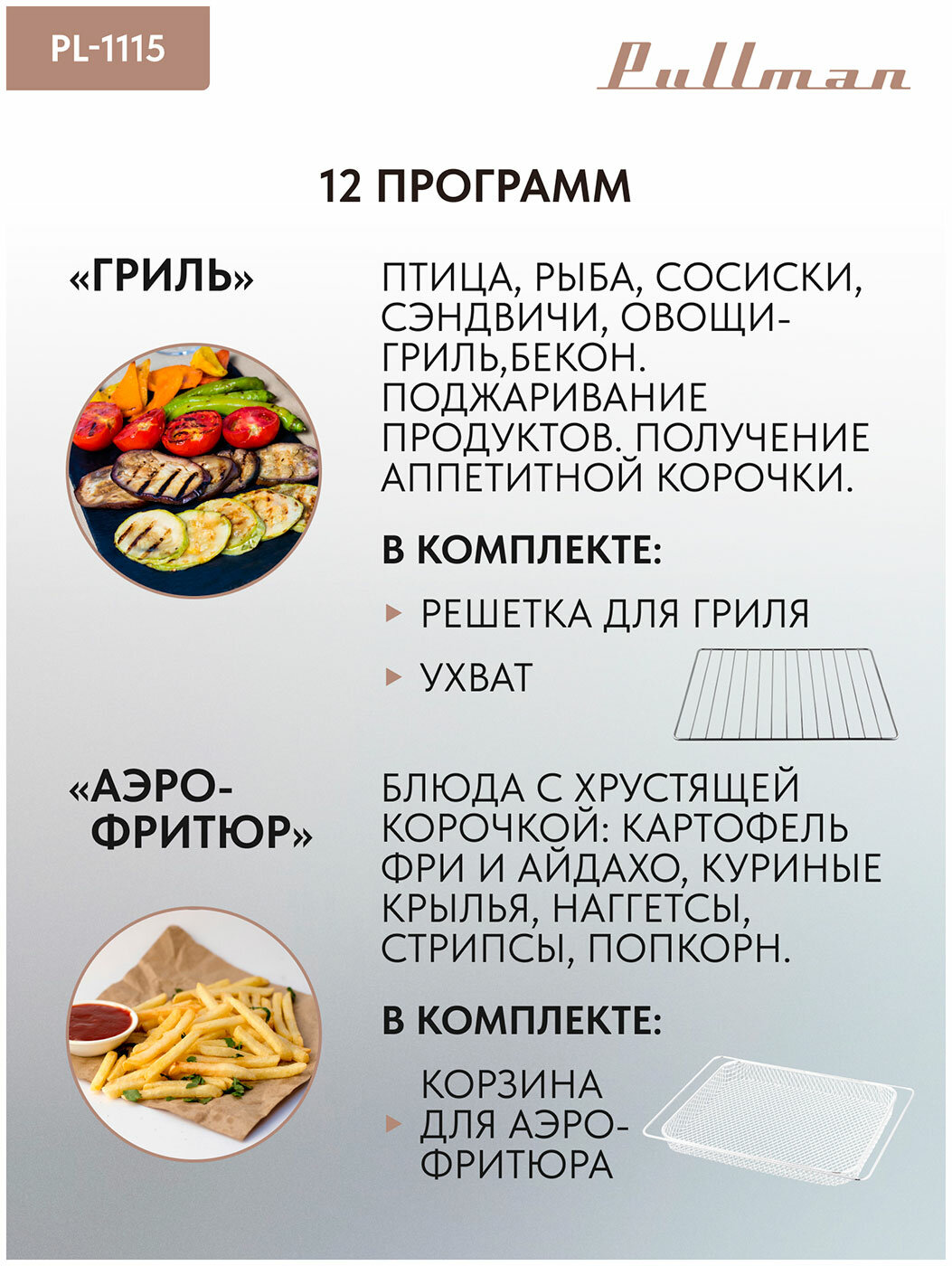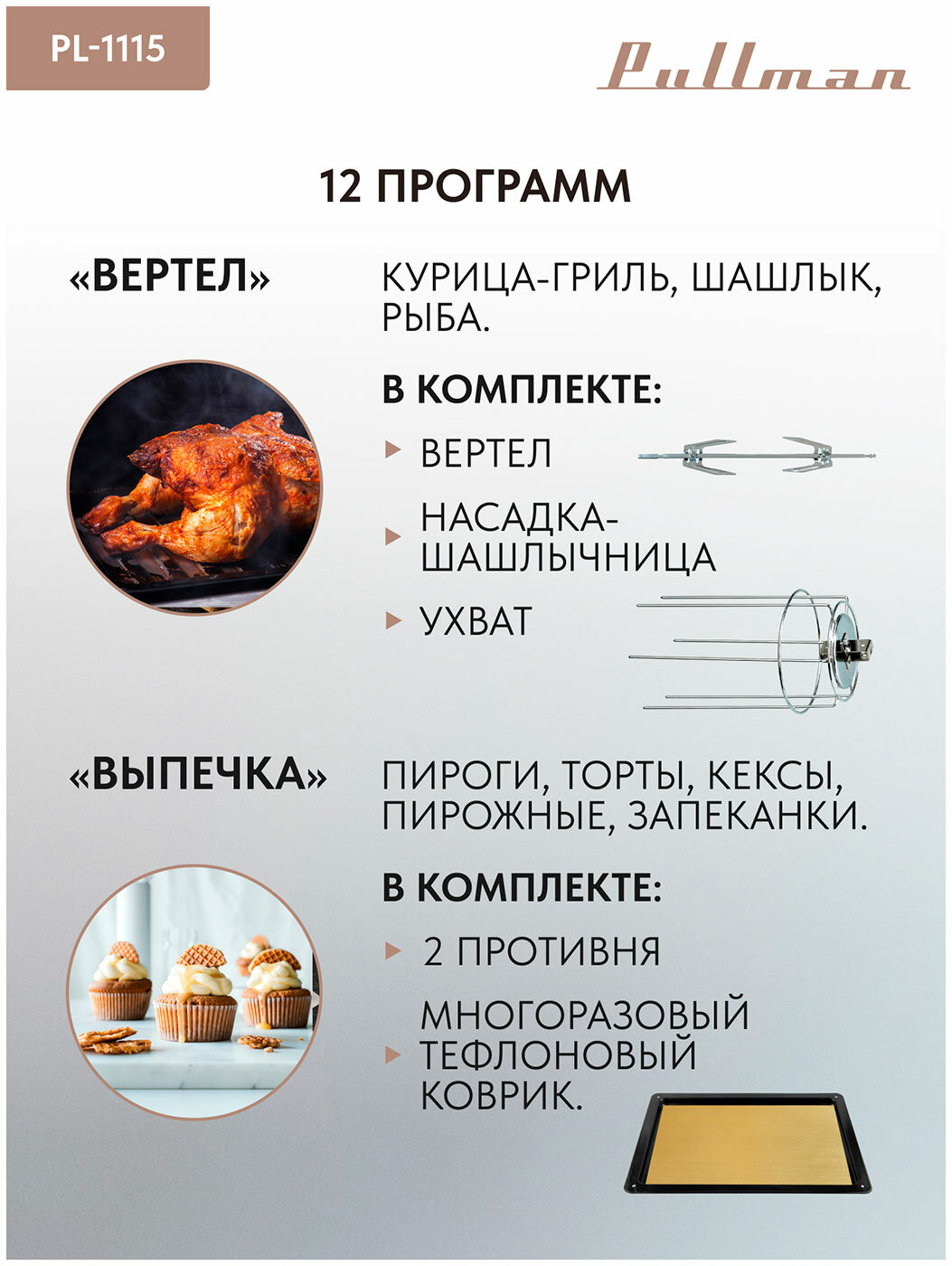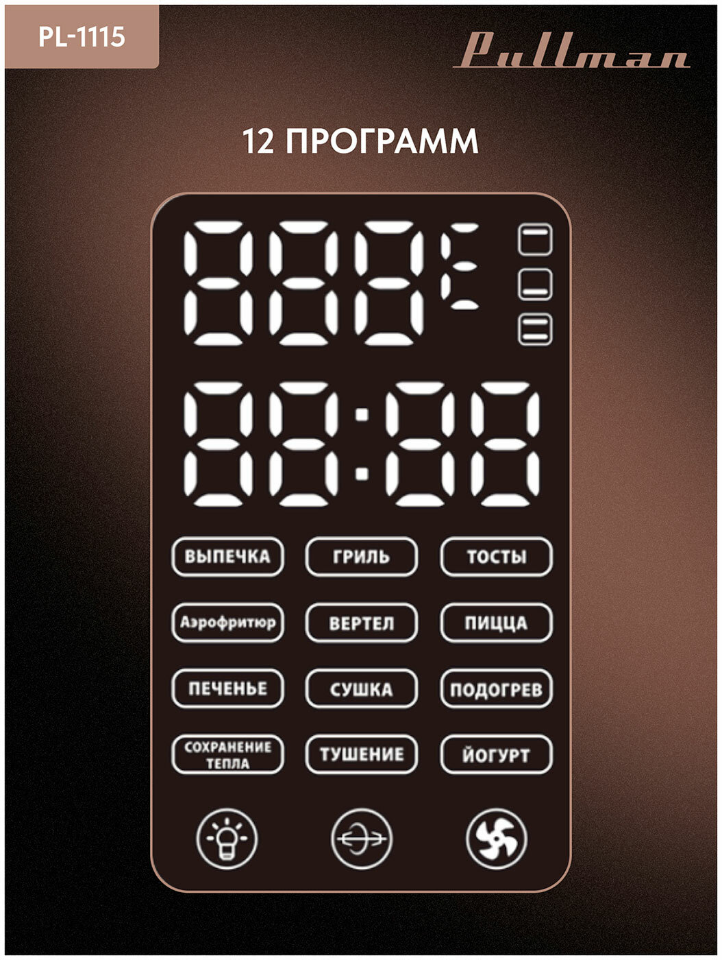 Электрическая духовка Pullman PL-1115. 5 в 1: сушилка, мини-печь, аэрогриль, шашлычница, йогуртница: сравнение цен, характеристики, фото, актуальное наличие и цены.
