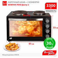 Купить Мини-печь Великие реки Днепр-2, черный/серебристый, 2 электрические конфорки. с доставкой по всей России.