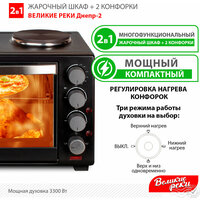 Мини-печь Великие реки Днепр-2, черный/серебристый, 2 электрические конфорки.: сравнение цен, характеристики, фото, актуальное наличие и цены.