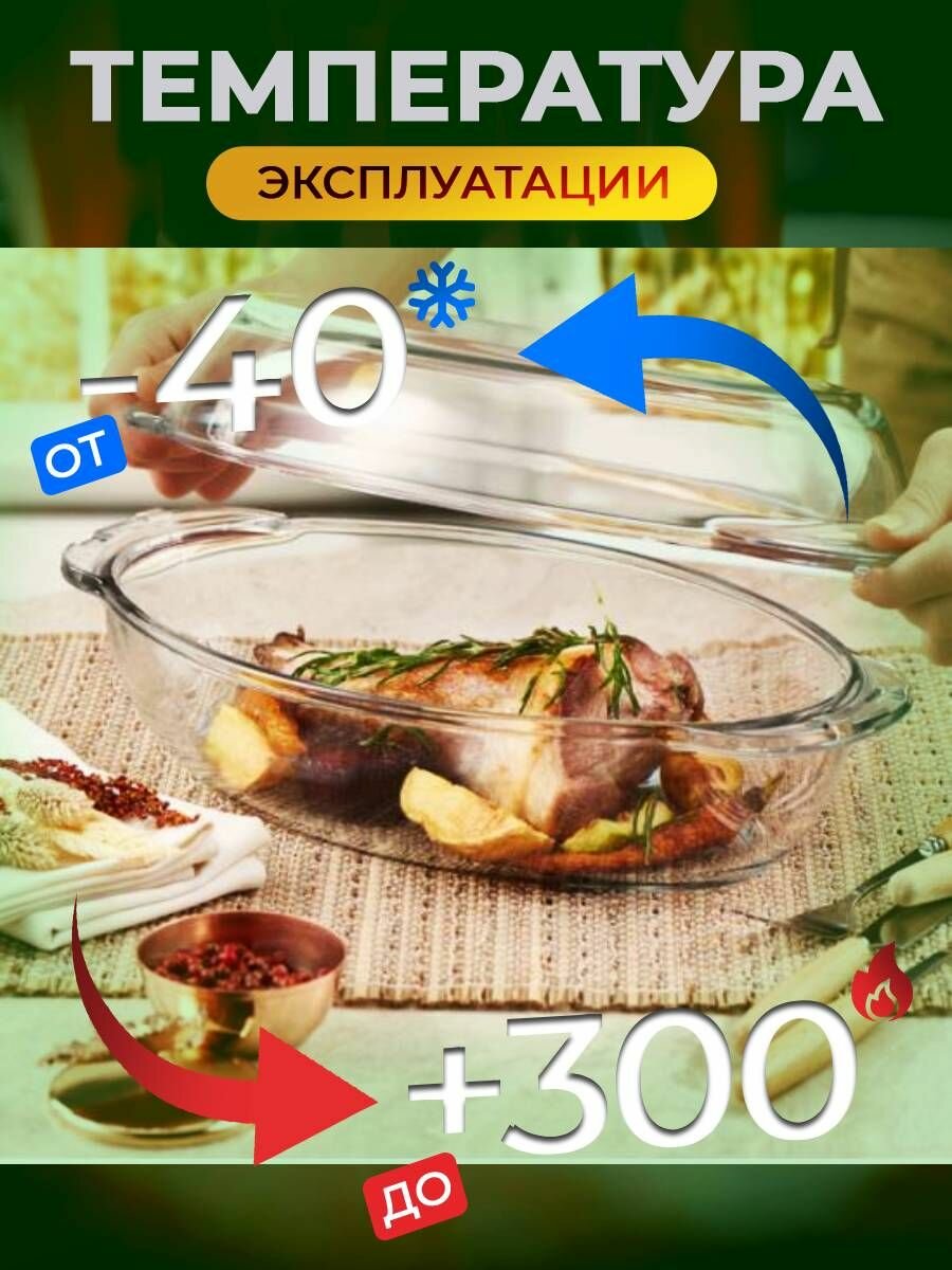 Купить Жаропрочная стеклянная кастрюля утятница с крышкой 2.85 л с доставкой по всей России.