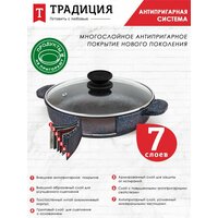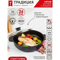 Купить Жаровня антипригарная литая 26см со стеклянной крышкой Сапфир ТМ Традиция готовить с любовью с доставкой по всей России.