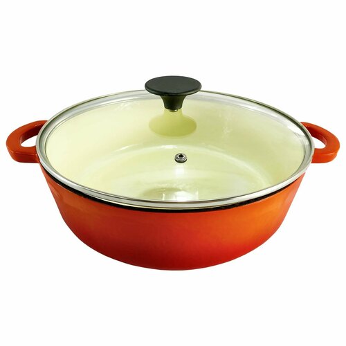 Жаровня чугунная 2,0л со стеклянной крышкой TM MYRON COOK. Внутреннее и внешнее эмалированное покрытие