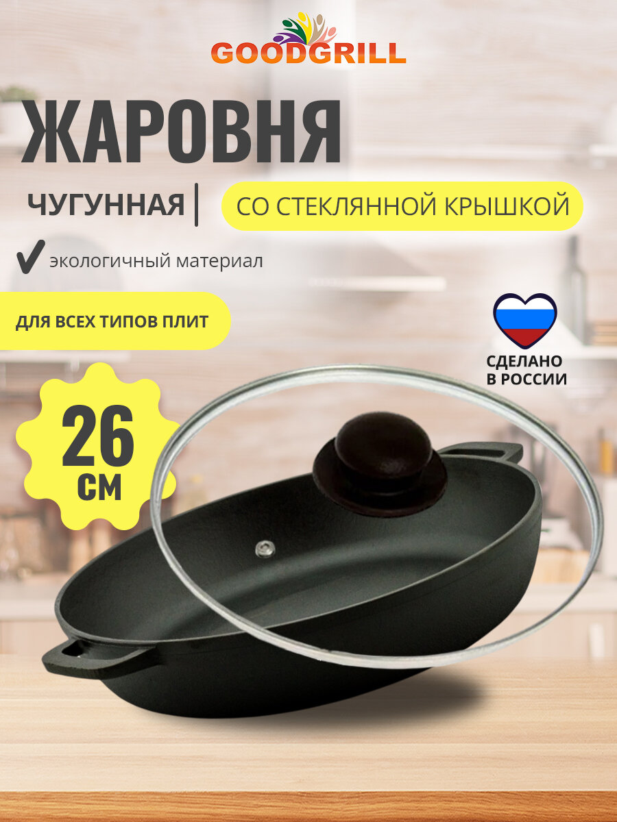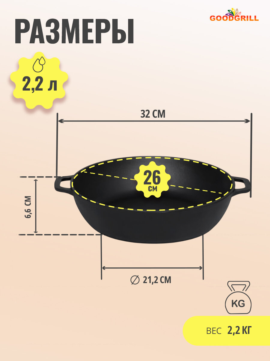 Купить Жаровня чугунная глубокая 26 см с крышкой с двумя ручками GOODGRILL с доставкой по всей России. Жаровня чугунная глубокая 26 см с крышкой с двумя ручками GOODGRILL: сравнение цен, характеристики, фото, актуальное наличие и цены.