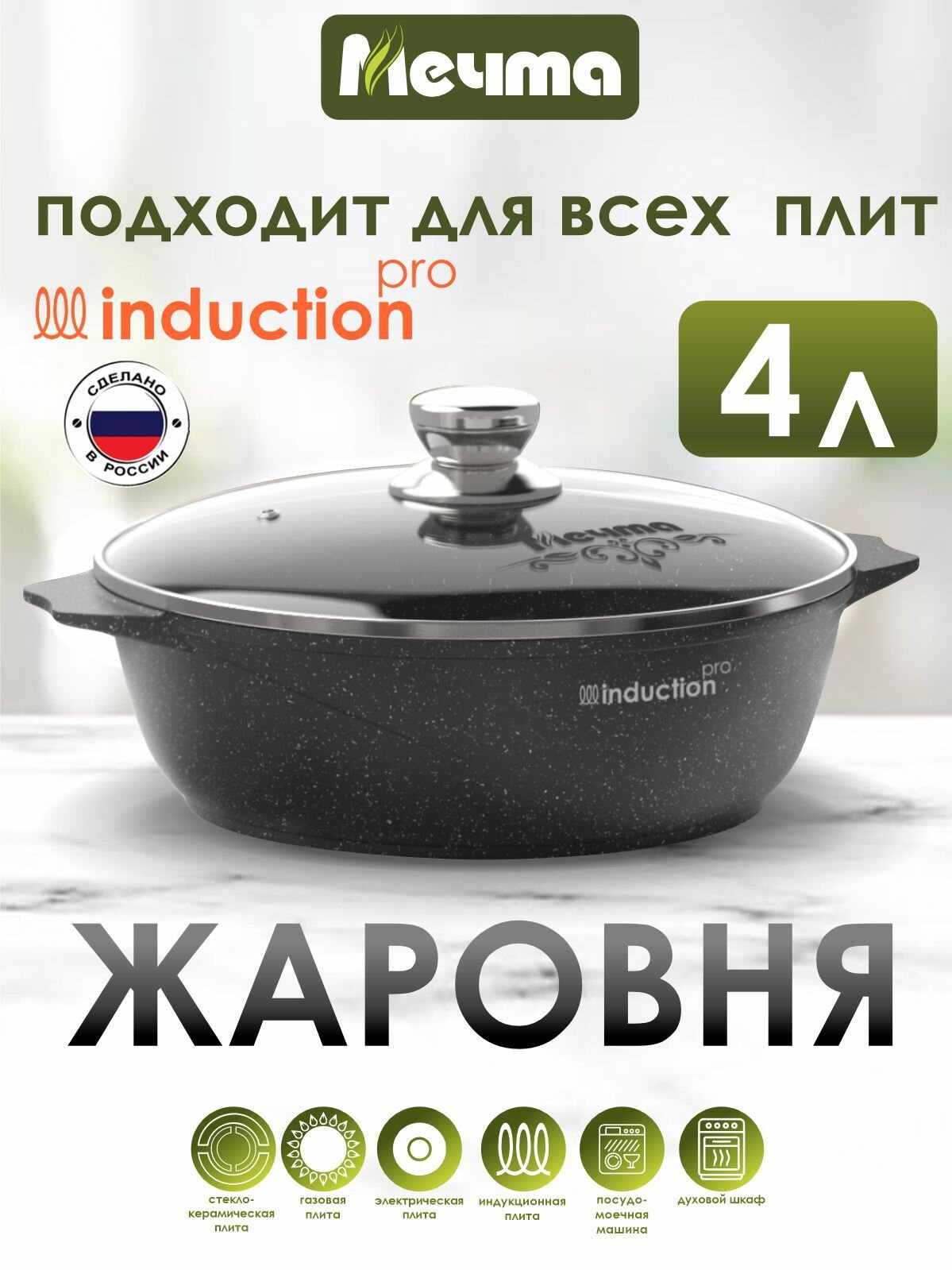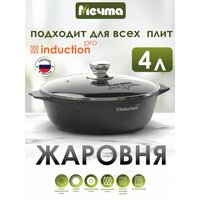 Жаровня индукционная "Мечта" 4л Гранит с антипригарным покрытием и крышкой – это удобная и многофункциональная посуда для кухни. Цвет: Черный. Объем: 4 л. Диаметр: 28 см. Диаметр дна: 22,7 см. Высота: 9 см. Толщина дна 7мм. Толщина стенок: 4мм. Она предназначена для использования на всех типах плит, включая газовые, электрические, стеклокерамические и индукционные плиты. Благодаря своим уникальным свойствам, она идеально подходит для готовки различных блюд без масла, таких как овощи, соусы, тушеное мясо и даже десерты. Жаровня оснащена высококачественным антипригарным покрытием, которое отличается особой износостойкостью и превосходными антипригарными свойствами. Оно рассчитано на интенсивное использование в течение длительного срока. Благодаря этому покрытию приготовление пищи становится более удобным и легким, а также требуется меньше масла или жира. В комплекте с жаровней идет удобная крышка из жаропрочного стекла с безопасной ручкой и пароудалителем. Крышка позволяет сохранять тепло и влагу внутри посуды, что способствует равномерному приготовлению пищи. Кроме того, окантовка из нержавеющей стали придает ей стильный и элегантный вид. Жаровню можно использовать в посудомоечной машине, что облегчает процесс уборки после готовки. Она также обладает сверхпрочным антипригарным покрытием на водной основе толщиной 55 мкр, которое безопасно для здоровья и соответствует требованиям ГОСТ. Посуда проходит тесты на износостойкость и демонстрирует ресурс более 12 000 циклов, подтверждая свою высокую прочность. Жаровня "Мечта" изготовлена из литого высококачественного пищевого алюминия, что обеспечивает надежность и долговечность посуды. Она представлена в нескольких цветах, чтобы соответствовать вашему интерьеру и предпочтениям. Жаровня "Мечта" гранитового цвета добавит элегантности и современности вашей кухне. Эта жаровня также является многофункциональной кухонной утварью. Она может использоваться не только как жаровня, но и как кастрюля для приготовления супа, сковорода для жарки, противень для запекания в духовке, а также как казан для гриля и мангала. Благодаря ее универсальности, вы сможете готовить разнообразные блюда и экспериментировать с различными кулинарными рецептами. Важно отметить, что данную жаровню не рекомендуется использовать на открытом огне или костре. Она предназначена для использования на плитах и в духовке. Жаровня "Мечта" гранит является частью посуды торговой марки "мечта". Эта марка предлагает качественные и практичные товары для кухни, включая индукционную посуду. Если вы ищете идеальный подарок для гурмана или того, кто любит готовить, жаровня "Мечта" будет отличным выбором. Ее стильный дизайн, превосходные характеристики и многофункциональность обязательно порадуют любого любителя кулинарии. Таким образом, жаровня индукционная "Мечта" 4л Гранит с антипригарным покрытием и крышкой является незаменимой посудой для вашей кухни. Она подходит для всех типов плит, включая индукционные, легко моется в посудомоечной машине, обладает высококачественным антипригарным покрытием и предлагает широкий спектр кулинарных возможностей.