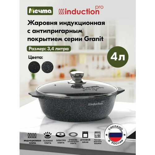 Жаровня индукционная «Мечта» 4л Гранит с антипригарным покрытием с крышкой, можно мыть в посудомоечной машине: сравнение цен, характеристики, фото, актуальное наличие и цены.