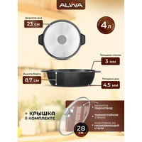 Жаровня сотейник с крышкой 4 литра ALWA Stone антипригарное покрытие литая безопасная AJ28MW02S: сравнение цен, характеристики, фото, актуальное наличие и цены.