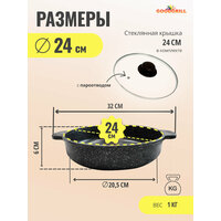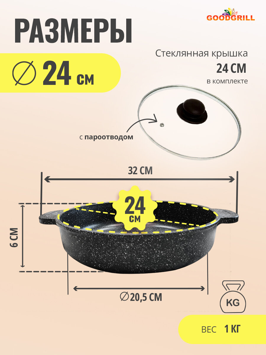 Жаровня толстостенная литая 24 см с трехслойным антипригарным покрытием с крышкой GOODGRILL: сравнение цен, характеристики, фото, актуальное наличие и цены.