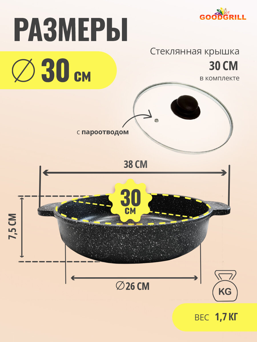 Жаровня толстостенная литая 30 см с трехслойным антипригарным покрытием с крышкой GOODGRILL: сравнение цен, характеристики, фото, актуальное наличие и цены.