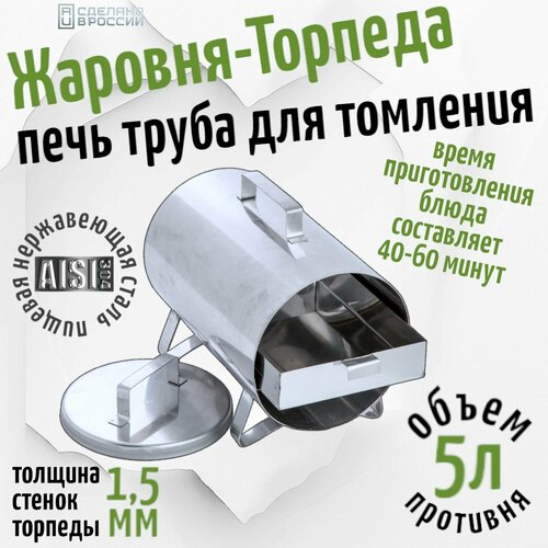 Жаровня — Торпеда, печь — труба, 5л, для приготовления на костре, из нерж. стали AISI 304, толщина стенок 1.5мм, Сделано в России: сравнение цен, характеристики, фото, актуальное наличие и цены.