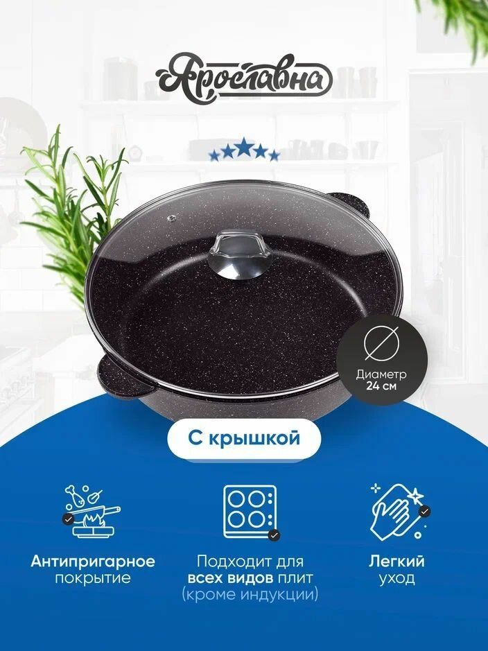 Жаровня, Ярославна, 24 см, Черная со стеклянной крышкой НЖ: сравнение цен, характеристики, фото, актуальное наличие и цены.