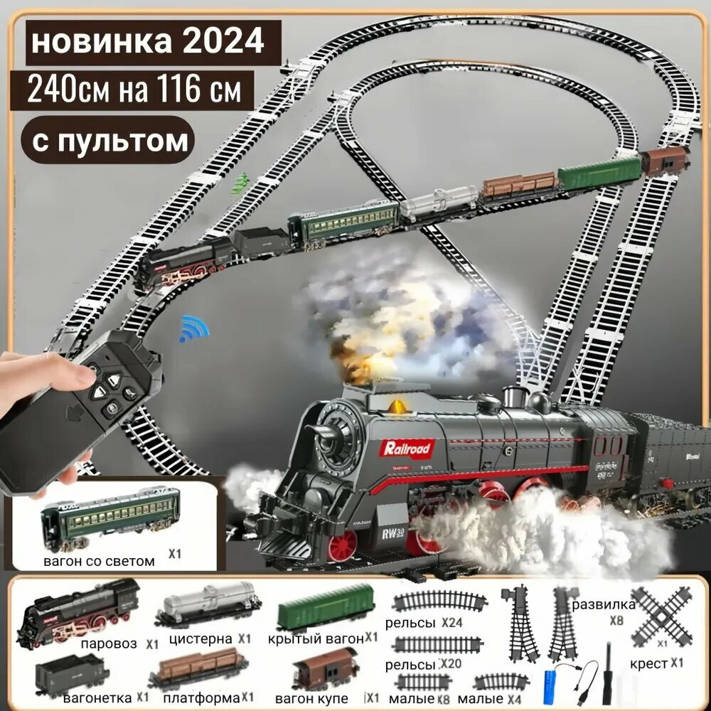 Мы представляем вам очень качественную железную дорогу, которая станет настоящим раритетом в вашей коллекции. Этот набор включает в себя не только поезд, но и специальные эффекты, которые делают игрушку еще более захватывающей. Железная дорога поставляется в отличной яркой упаковке, которая сразу привлекает внимание. Это идеальный подарок для взрослых и детей, ведь она способна привнести радость и воспоминания о детстве. Раритетный поезд выглядит очень реалистично, пар идет из трубы и из-под передних колес, создавая иллюзию настоящего паровоза. При включении дороги раздаётся сигнал о начале движения, пар начинает появляться, а поезд медленно разгоняется. Это создает атмосферу настоящего путешествия на железной дороге. Важно отметить, что пар начинает появляться постепенно, по мере разогрева нагревательного элемента. Никакого запаха пластика от пара нет, это проверено! Эта игрушка является премиального качества, которое вы оцените с первого взгляда. Она выполнена из прочного пластика, что делает ее долговечной и надежной. Железная дорога с поездом - это мечта многих мальчишек, которые мечтают о приключениях на рельсах. В нашем ассортименте представлены несколько вариантов детской железной дороги, чтобы каждый мог выбрать набор, который соответствует его предпочтениям и желаниям. Большая железная дорога отличается от маленькой количеством вагонов и рельсового полотна, что позволяет создать более масштабные и интересные маршруты. Этот набор железной дороги поставляется с электропоездом и вагонами, что добавляет реалистичности и разнообразия в игру. Каждый элемент набора сделан с особой тщательностью и вниманием к деталям. Вместе с железной дорогой в комплекте идут необходимые аксессуары, такие как пипетка для залива воды, отвертка, аккумулятор и зарядное устройство для аккумулятора. Хорошая упаковка, которая сопровождает эту игрушку, обеспечит ее сохранность и целостность при транспортировке. Вы можете быть уверены, что ваш подарок будет в идеальном состоянии. Имеется аккумулятор в комплекте, что позволяет забыть о постоянной смене батареек и наслаждаться игрой без прерываний. Эта железная дорога с поездом - шикарный подарок на день рождения, Новый год или любой другой праздник. Выбирайте модель набора по картинкам, и вы можете быть уверены, что товар полностью соответствует изображению. Не упустите возможность порадовать себя или ваших близких этой уникальной и захватывающей игрушкой. Кроме того, железная дорога не только развлекает, но и способствует развитию ребенка. Игра с этой железной дорогой развивает моторику рук, координацию движений и воображение. Ребенок сможет создавать свои собственные маршруты, устраивать пассажирские и грузовые перевозки, что развивает его логическое мышление и творческие способности. Не упускайте возможность прикоснуться к истории и погрузиться в увлекательный мир железных дорог. Закажите эту железную дорогу прямо сейчас и ощутите волшебство путешествия на рельсах!