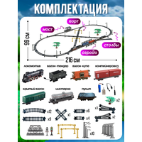 Деревянная железная дорога с краном и поездом в комплекте 120 деталей
